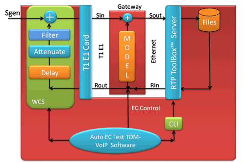 Zestaw składa się z generatora sygnału, biblioteki sygnałów testowych oraz z symulatora pętli echa. Testy są wykonywnae w pełni automatycznie od strony sieci TDM i sieci VoIP. Testery AutoEC Tester wykorzystywane są przez producentów sprzętu oraz operatorów sieci, wykonujących pomiary kwalifikacyjne urządzeń przed ich zakupem.